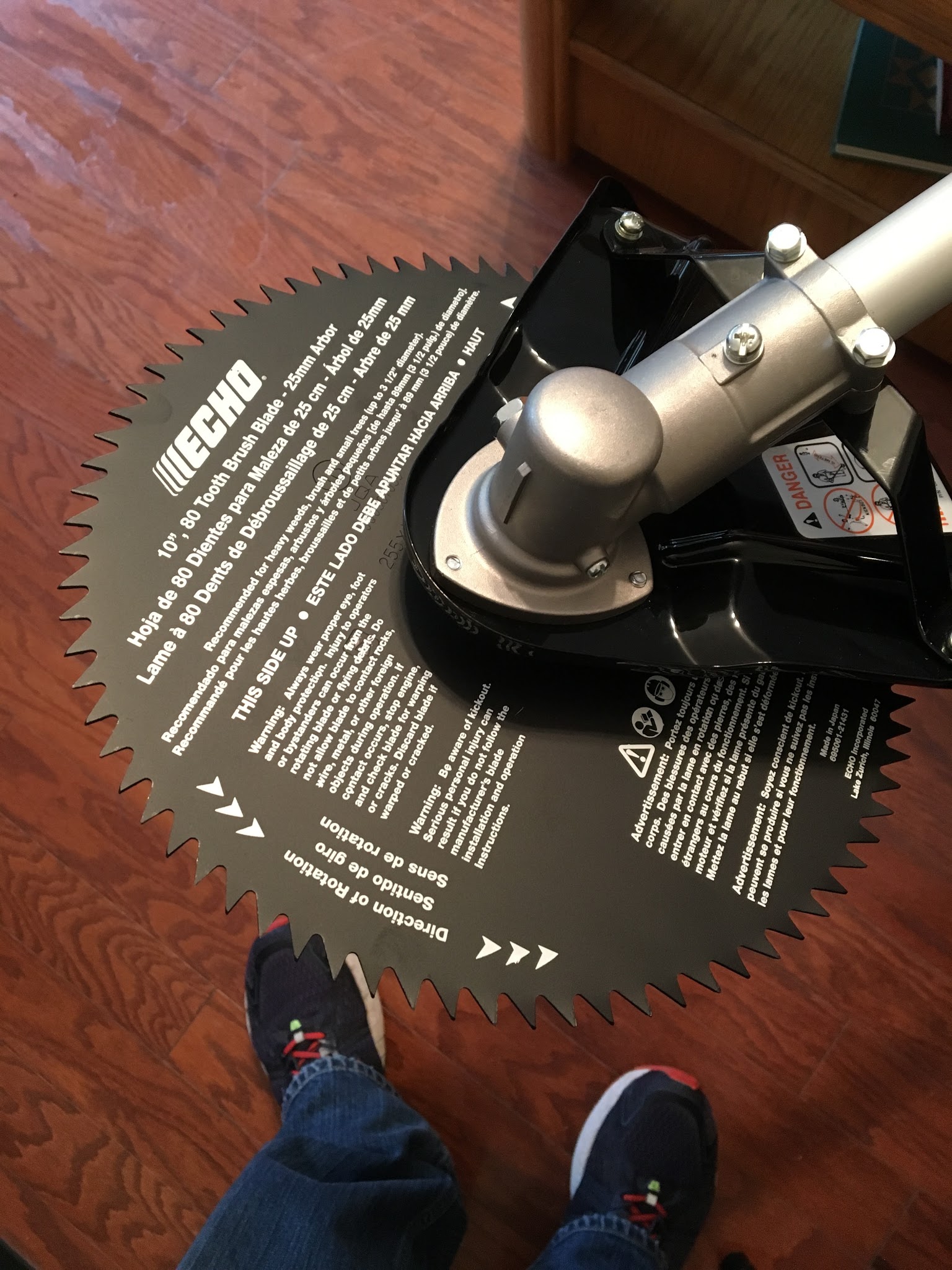 For the past month I've been clearing what will be the backyard (left side of the map, above). Think: three acres of 6-8ft weeds, intertwined with thorny vines. Possessing the right tools for the job is imperative.