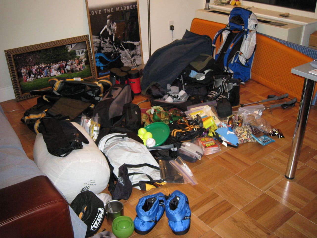 I spread out all of the gear that I'm bringing with me on the floor, yesterday, and took a few pictures of it. It's an impressive amount of stuff. I should probably start packing it into the duffel bags at some point today. I hope it all fits.