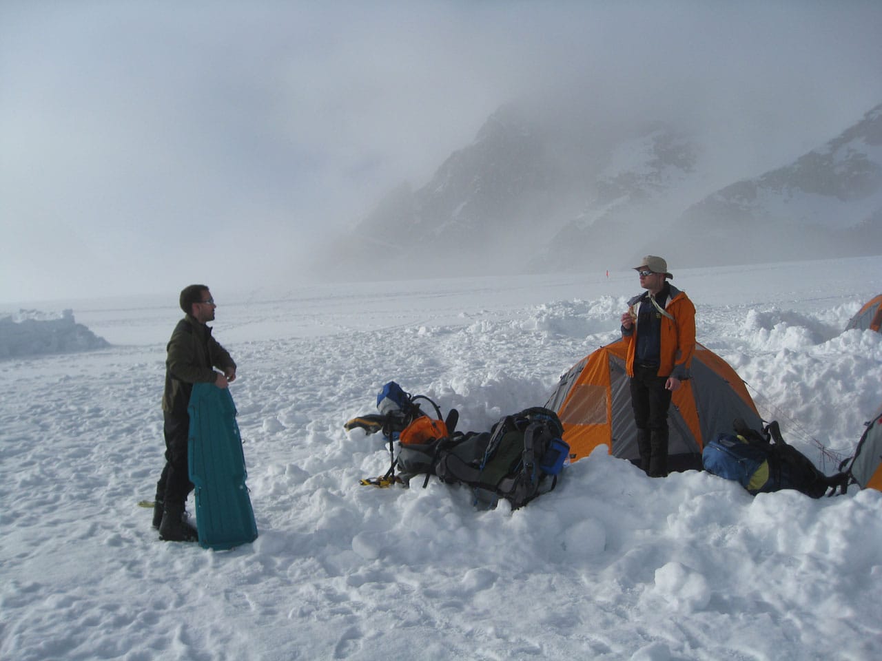 Sweet! We have a go. Dan, Wes and I jumped on a plane and we made it to base camp. We tossed everything out of the plane, joined Billy and the pilot was gone. Fog is rolling in so no one else is taking off. Now the four of us might end up staying the night here while everyone else remains in Talkeetna for food and beer and spends the night there. Whatever. I think I got the better end of the deal (if it comes to that).