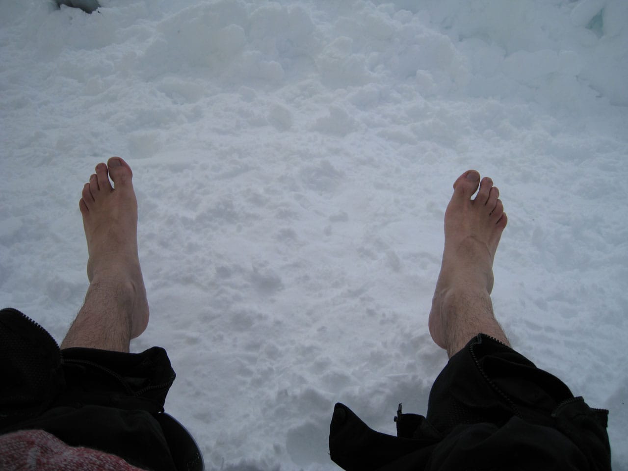 We extended a snow wall for the tents and then Wes, Dan, Baron and I build an unrivaled crapper - nearly tall enough to stand in, a curved entry to add privacy and protect against the wind. And the weather is beautiful - it's even hot out (relatively speaking). Really wonderful.