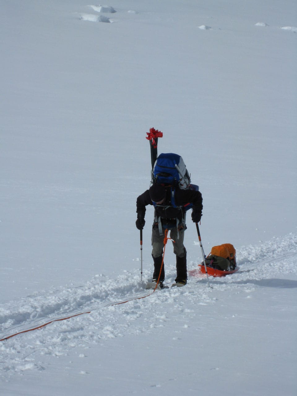 Death becomes me. I'm _not_ being melodramatic. Leave me alone. It was only three hours instead of the normal 5 - 6, but we ascended at least 1,500 feet and my heal risers weren't cooperating for a reason I only discovered at the end of the day and my sled was seriously back weighted, thus digging into the fresh, powdery snow that had accumulated over the past several days, which all added to the suckiness. The torture. I was all but collapsing on some hills. Still, I survived. Barely. I'm happy to be at 11k camp. This has easily been the hardest physical thing I've ever done. I can't imagine complaining about anything ever again.