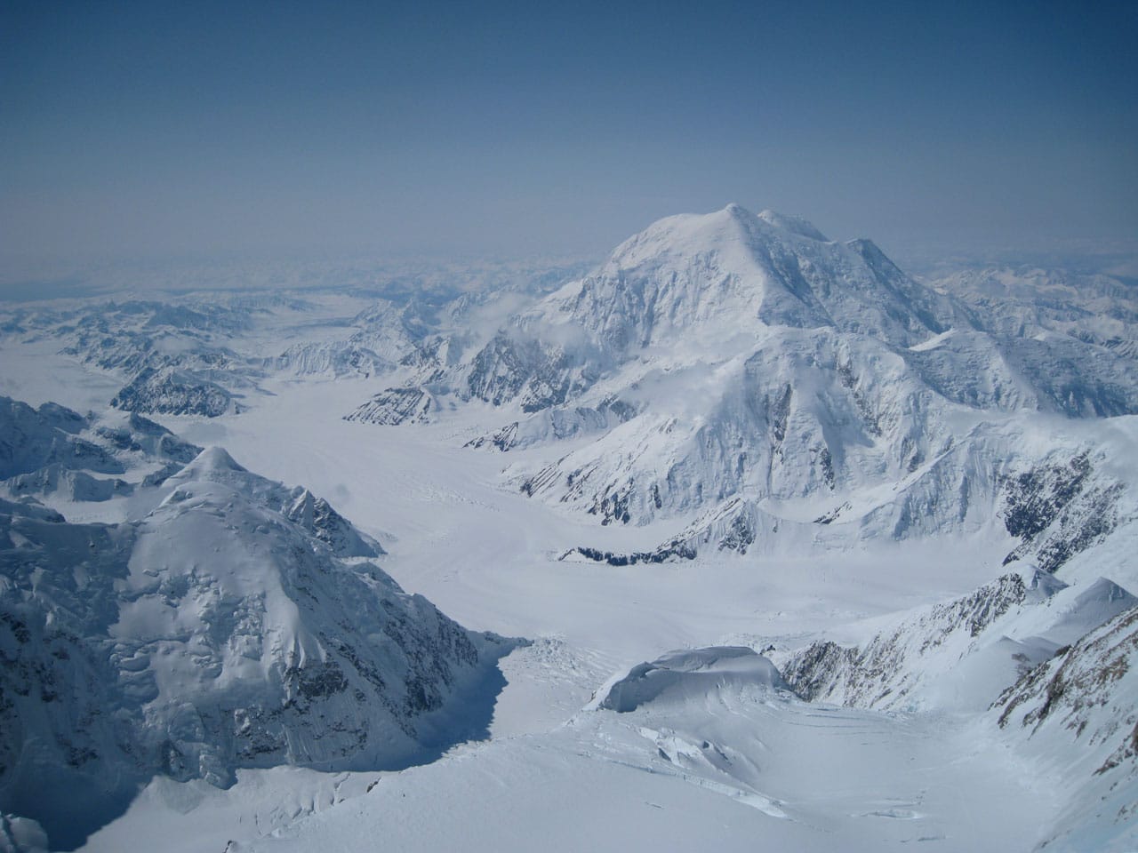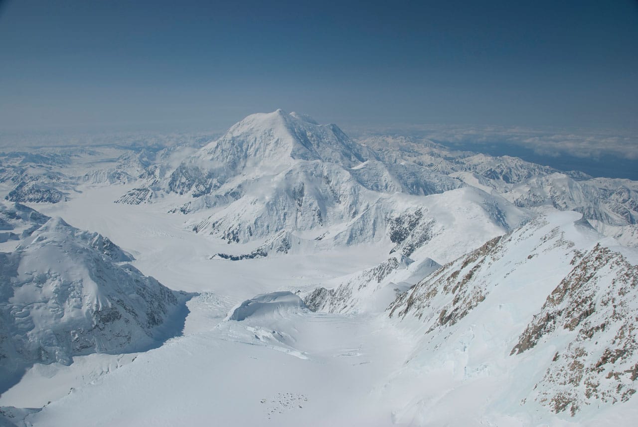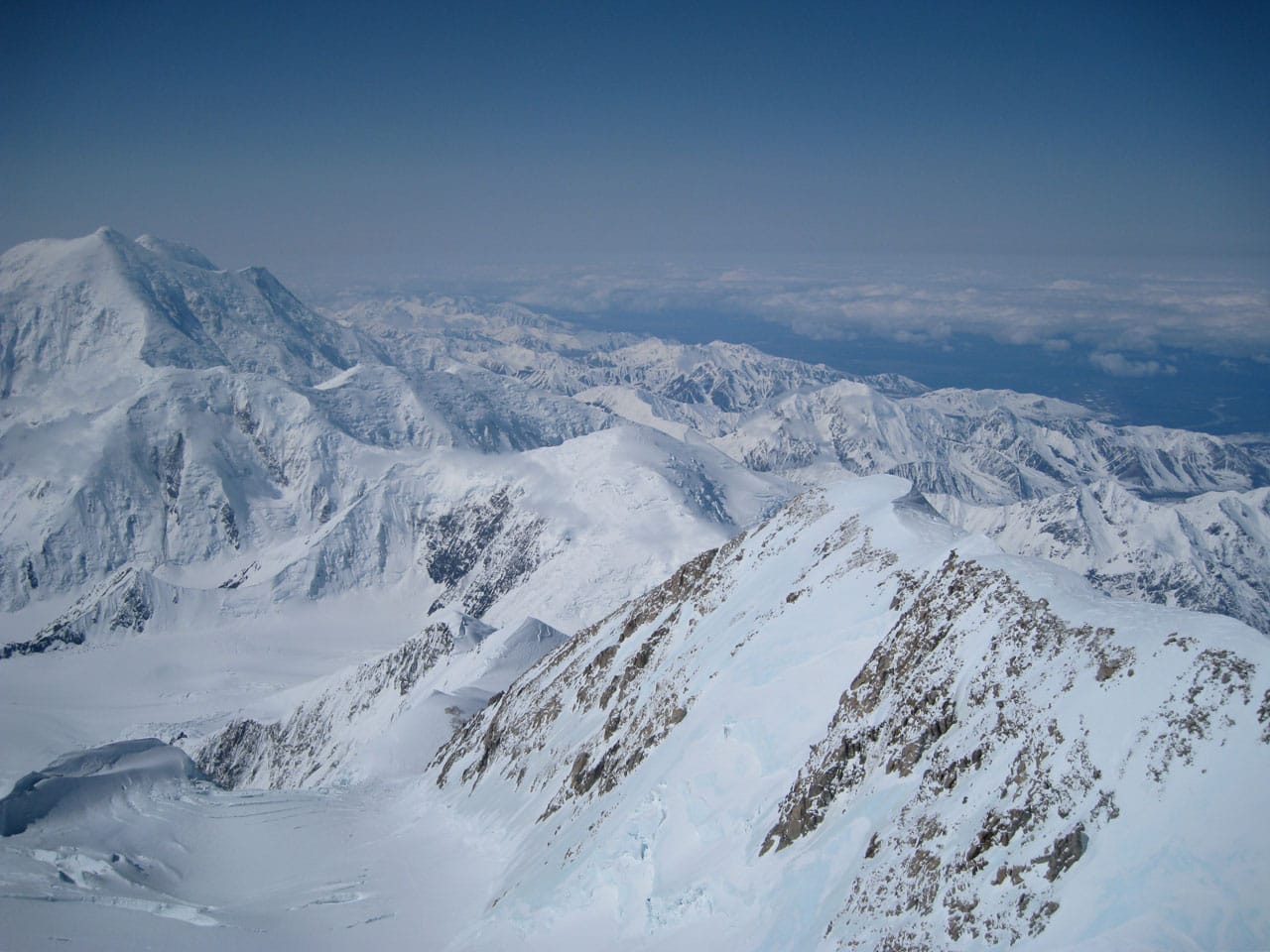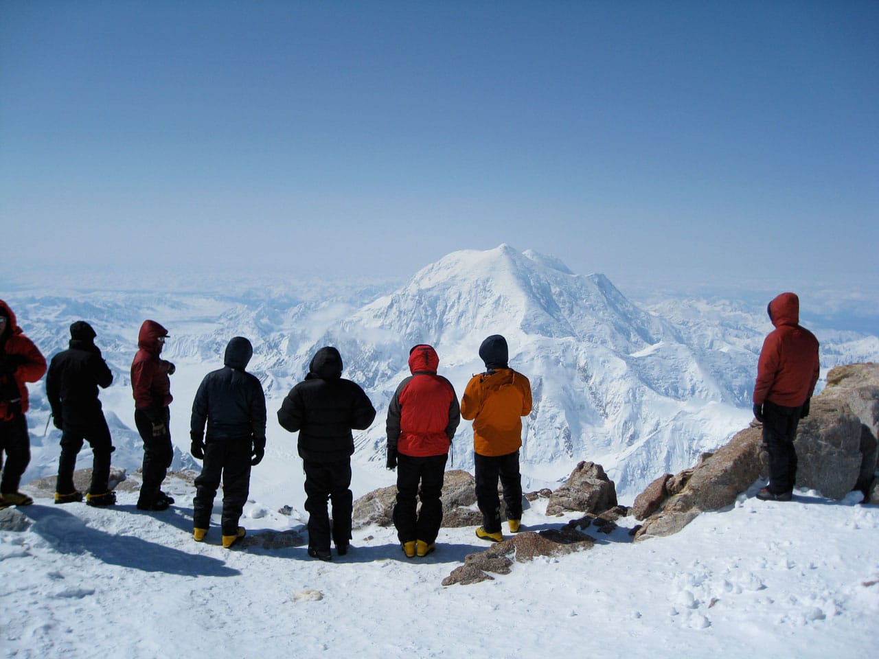 The hike across the West Buttress proper, yesterday, was amazing. Parts of it were only a foot wide with a multi-thousand foot drop on either side, and that's why we used several running belays. Where we couldn't drive in pickets, we slung the rope over rocks. It was a bit of a hassle, but the benefit in case of a fall was obvious.