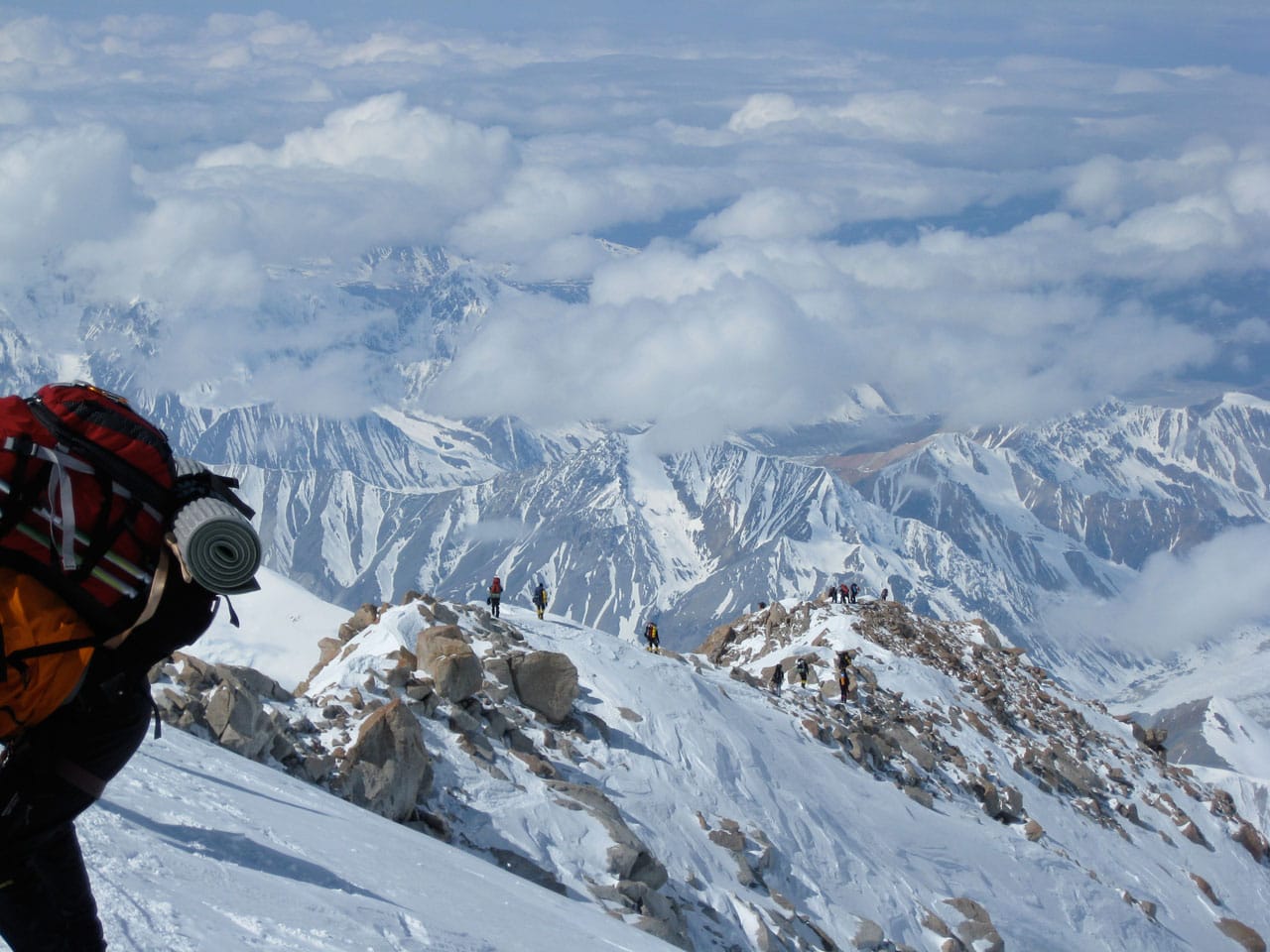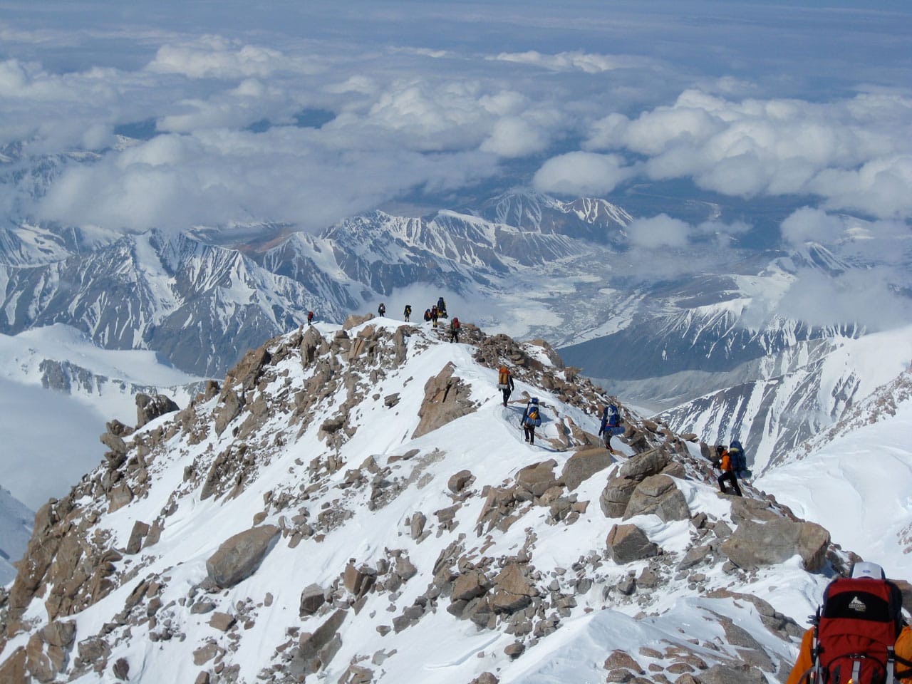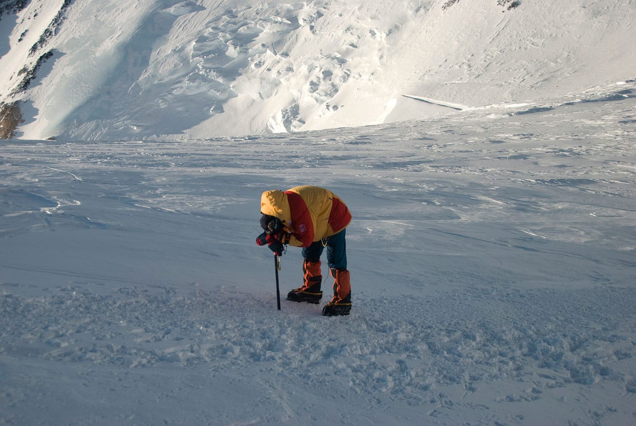 Well, we made it down the headwall. That was intense. A lot of people summitted yesterday, so a lot of people were descending today, and it took _forever_ on the fixed lines. My poor quads. After the fixed lines we were nearly running down the slopes towards 14k camp, and my quads just couldn't take it. I had to take a couple short breaks to stretch and rest my legs - they were just about to fatigue and crumble under my weight. I think I failed to eat enough while at high camp.