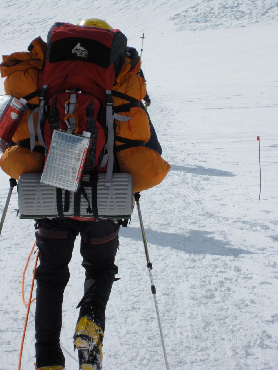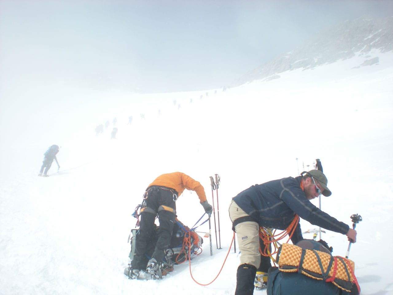 Well, we made it down to Camp 3. The slowing-down-the-sled thing, especially down Windy Corner, was just as bad as I imagined. As we got to motorcycle hill I finally told Mike that if he kept on going, I'd collapse - there was no way I had the strength left to stop that sled down a hill _that_ steep. It turned out not to be an issue because we turned the rope team around, Dan now in front and Mike in back (which is good in case anyone starts falling), and Mike slowed the sled down.