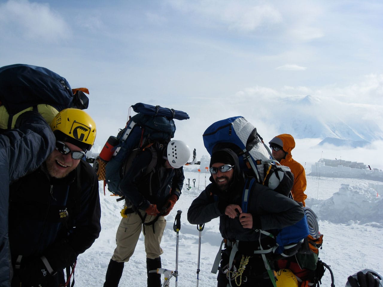 Meanwhile, we were charged with ditching as much of our extra food as possible. We all tossed our extra food onto a sled and started devising a strategy when we noticed a Russian group near-by. We sent Yuri over to "talk with his comrades", with the sled, of course. He pawned off ALL of our extra food on them - and they were even happy to take it. That's awesome. That's a ton of weight we don't have to carry now.