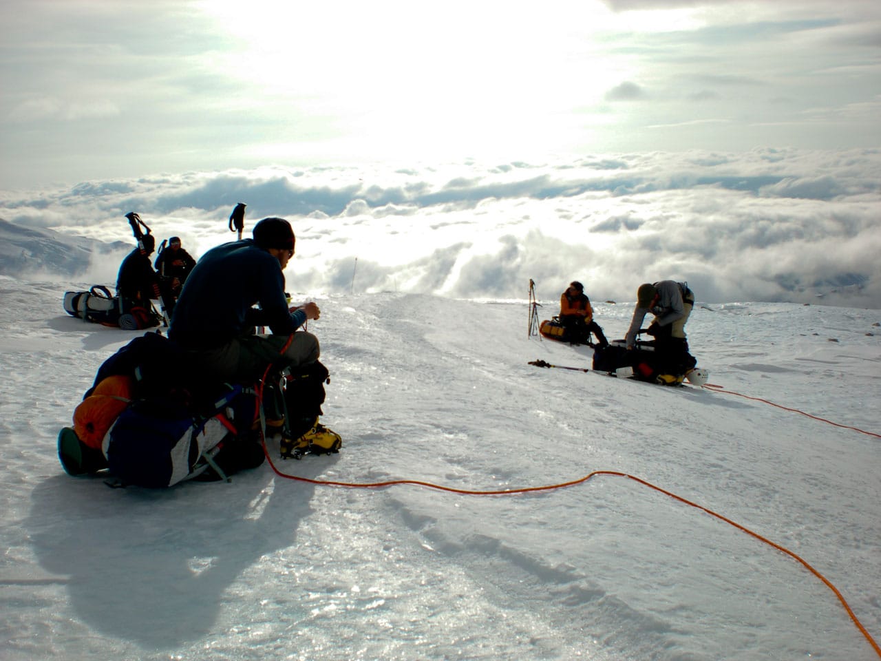 When we were approaching camp, I noticed some people tossing around a green frisbee that looked rather similar to mine. I went over to talk with a guy who was part of the RMI 5 group camped here, who was also with me on Rainier, and it turns out that they found my frisbee when they were digging out my cache. Of course, that means that they were looking through our bags. That's a little disturbing. Since they are going to end up staying at 14k for a while I told them to keep the frisbee. I guess I need to find me another one. That was a good frisbee, too.