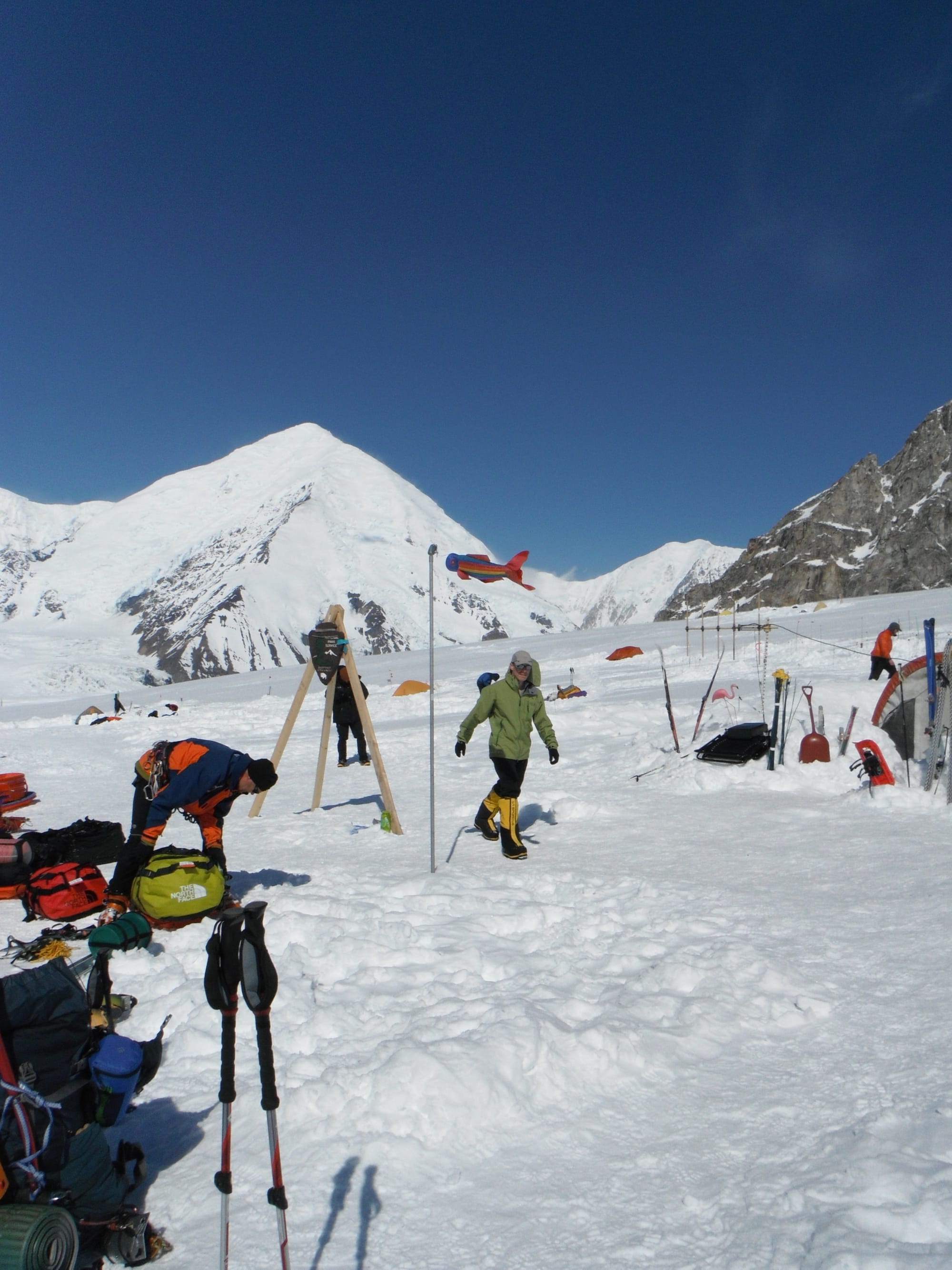 11:00 - The winds at base camp picked up while we were en route and we nearly turned around, but they suddenly died down and Dave made a perfect landing.