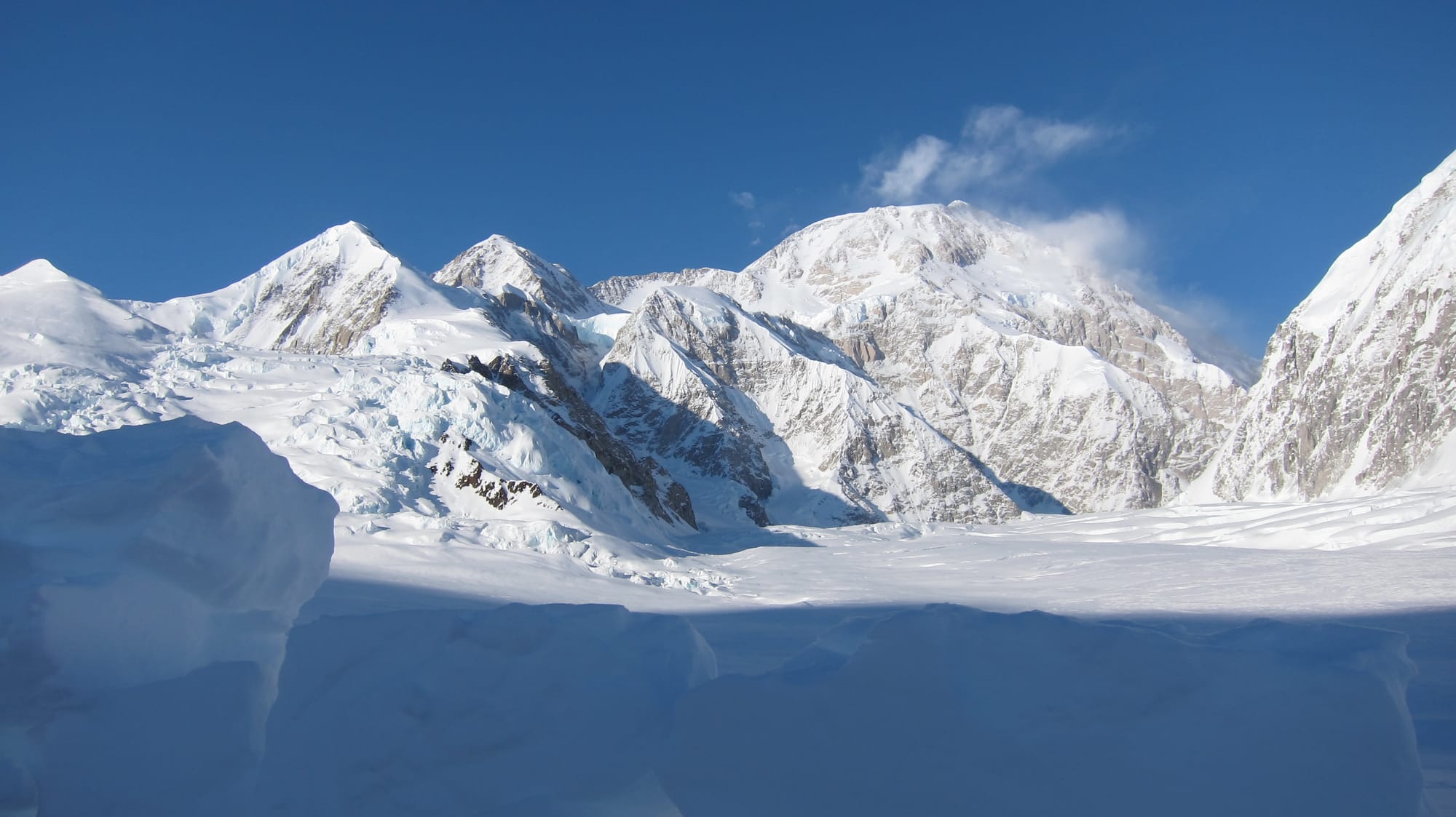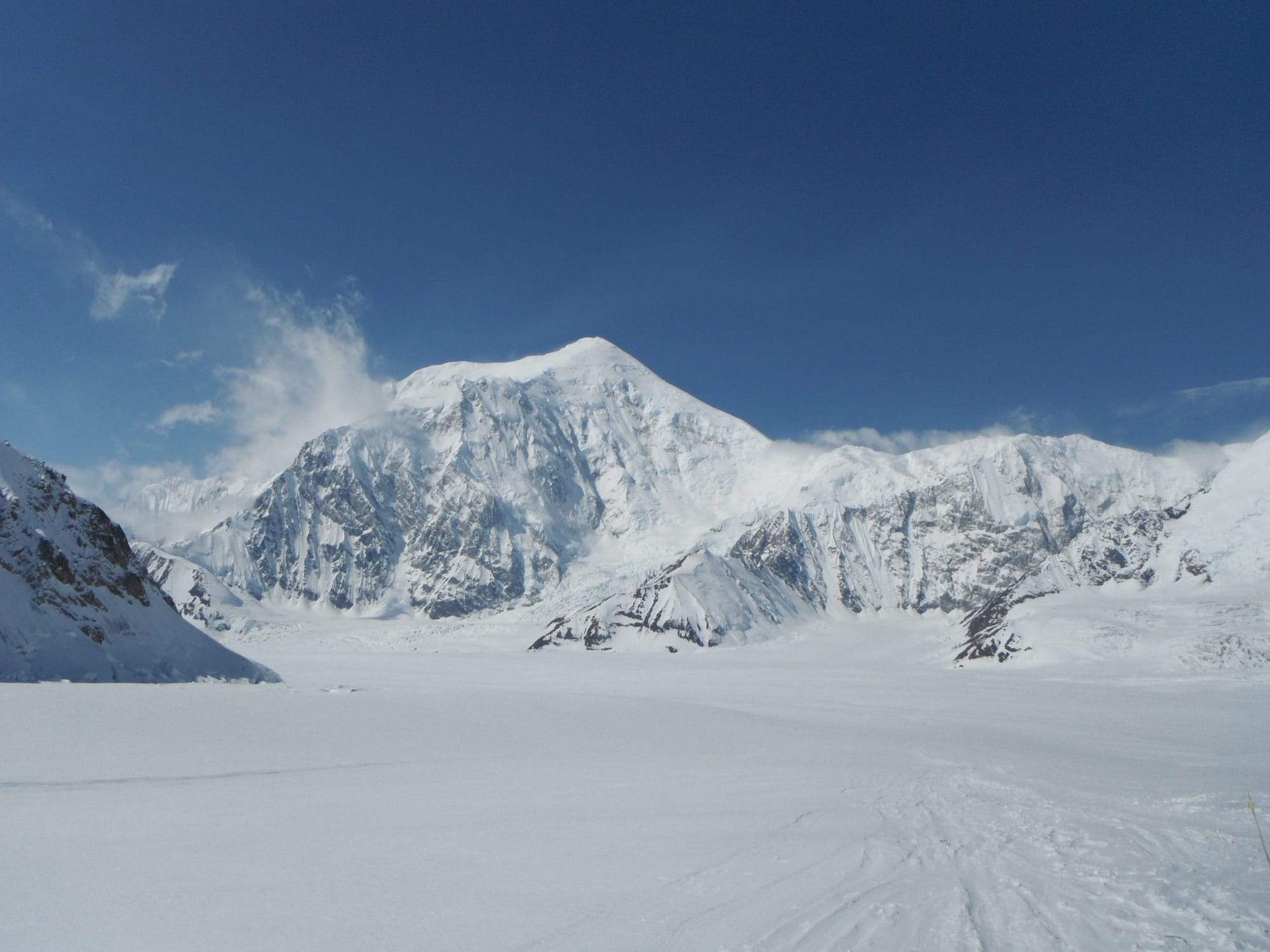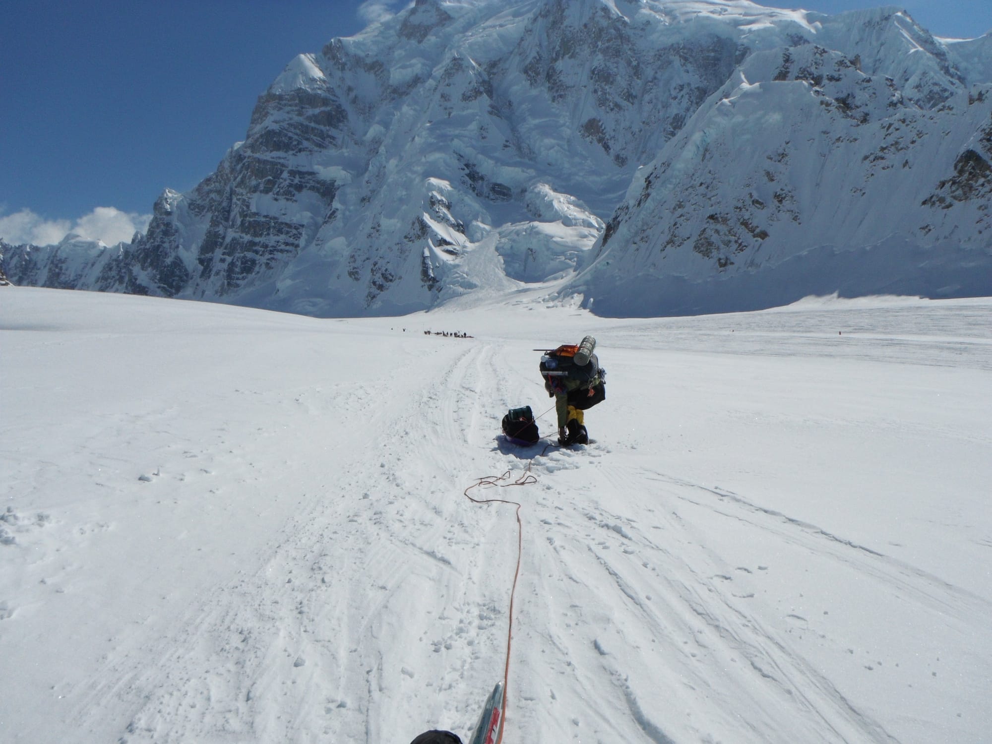 11:45 - It took us an hour or two to rig up the sleds, gear up and rope up. The conditions were okay (but not great). The wind really picked up as soon as we started up the Kahiltna and it never stopped. It was mostly a head wind, and a bitterly cold one at that. Wes actually dawned his balaclava.
