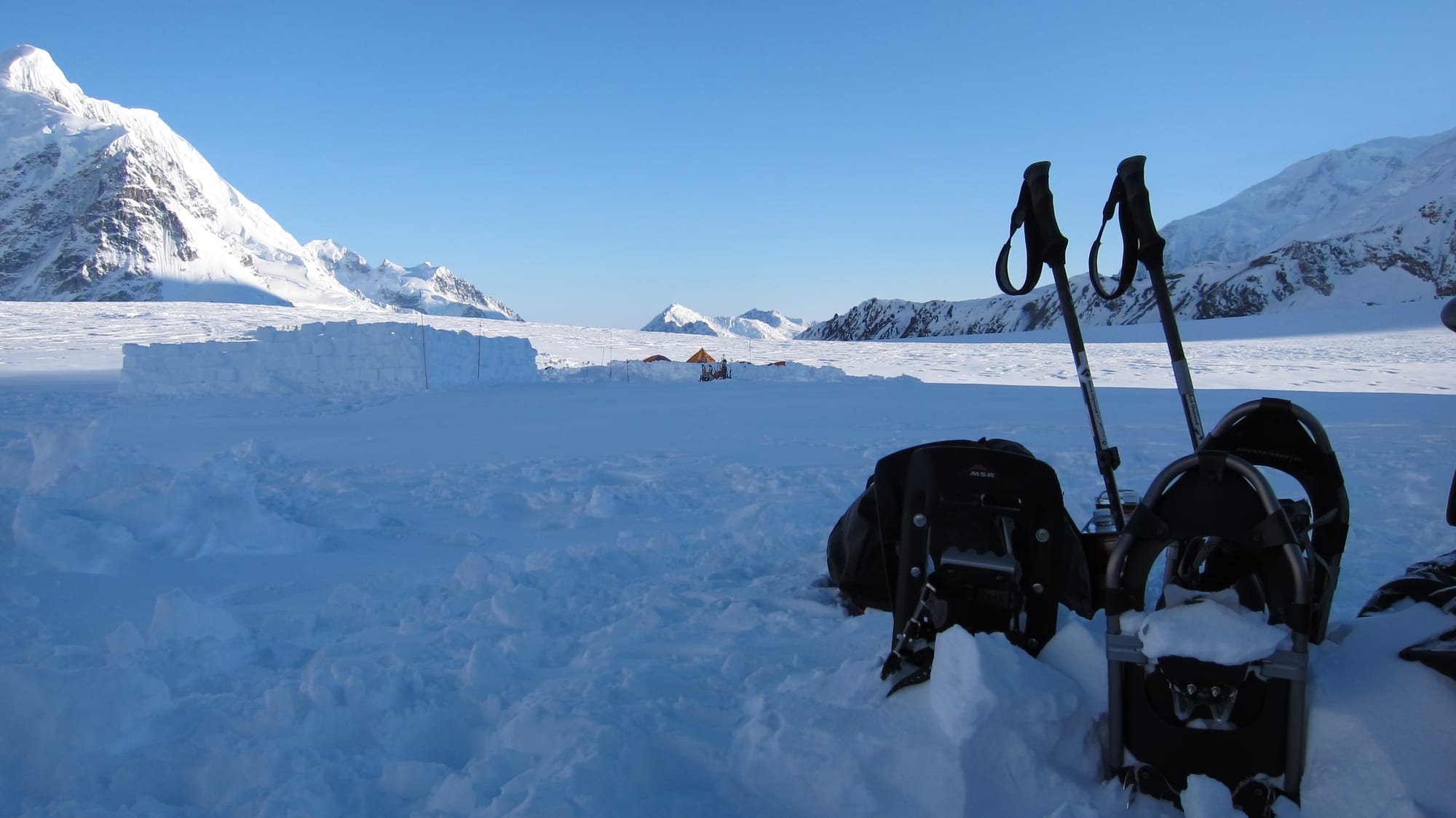 18:00 - At Camp 1, we found an abandoned kitchen area and pillaged it's walls for our tent wall. Wes courageously determined to cook, even though the temperatures kept dropping and the wind kept increasing. Mashed potatoes, cheese, broccoli, bacon bits. Half a gallon of it. We didn't finish it. We're pathetic.