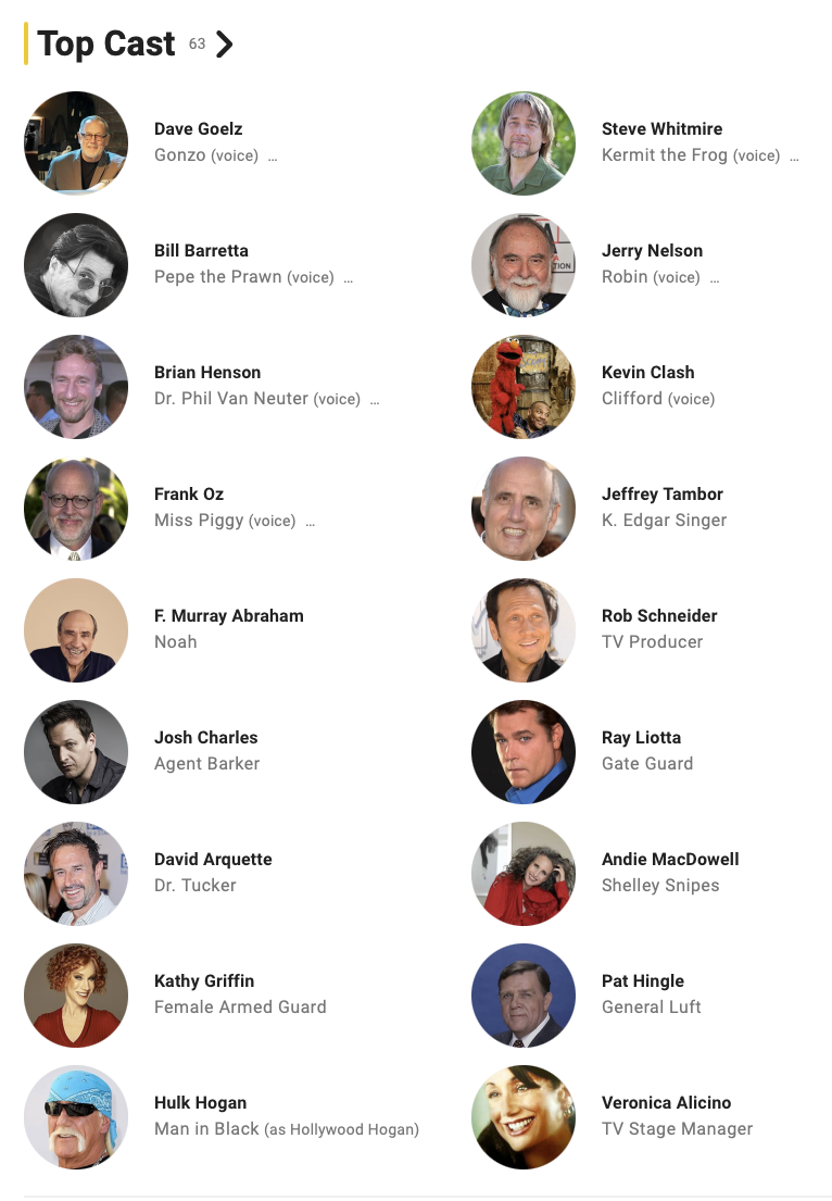 One quick tangent. I see that a man, Frank Oz, does the voice for Miss Piggy. In my mind, Miss Piggy is the muppet embodiment of Jennifer Coolidge. I had to look up her name. I kind of expected to find her as the voice actor. Apparently not.