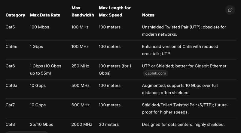 Having a 10Gbps switch is all well and good, but you need to be able to connect to it. I've got these little 1ft ethernet cables, and I've got a 50ft ethernet cable. So, back to Amazon I went. I decided to try out these braided cables. They claim to be "Cat 8", which is interesting. I don't know the cost of ethernet switches that support speeds limited to Cat 8, but I guarantee they're outside my price range. The websites probably just say, "call to schedule a demo with our sales department."