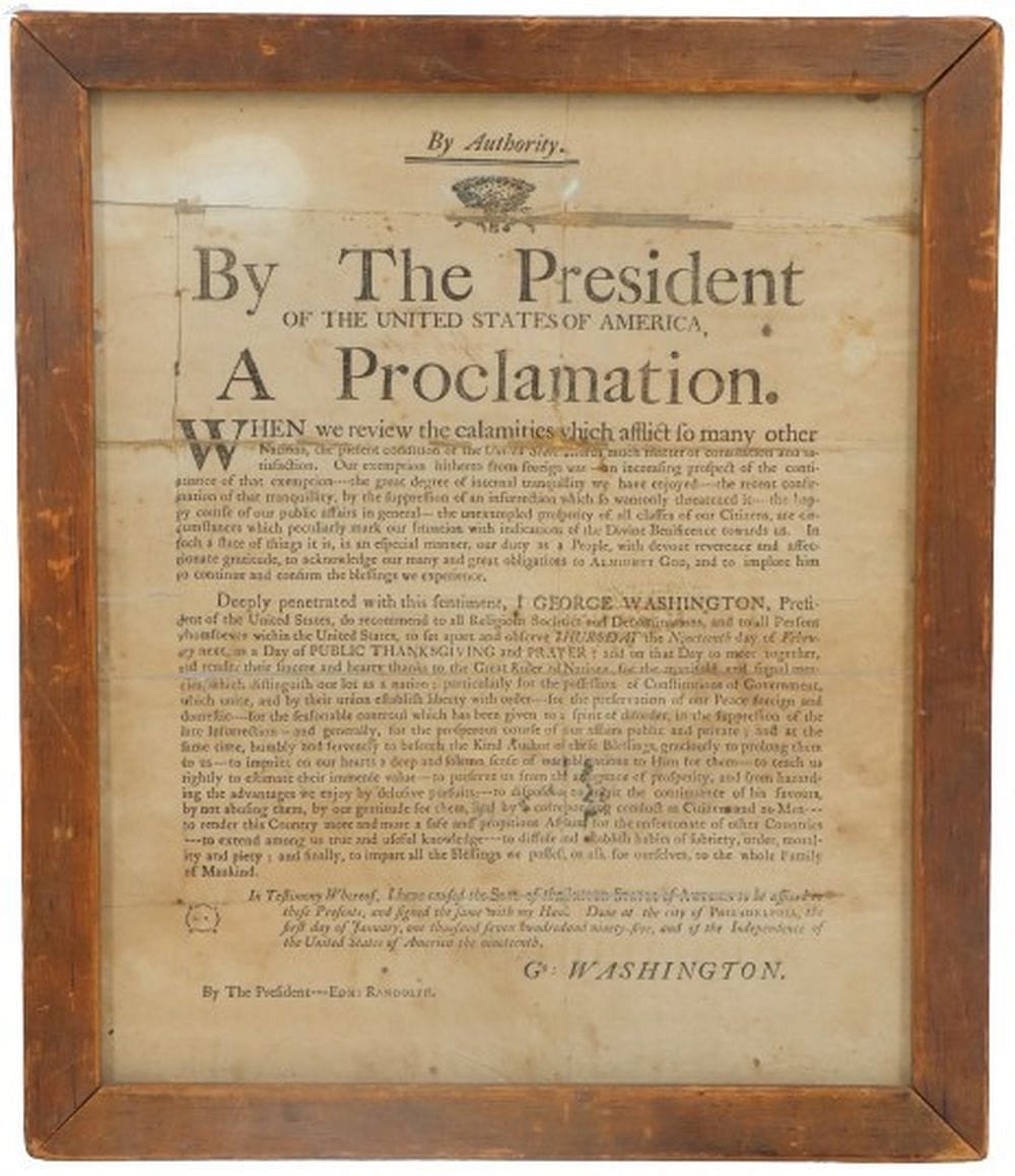 The "day" of Thanksgiving has bounced around, and for a long time was not uniform amongst the states. In 1789, George Washington delivered a proclamation in this regard. Skipping to the end of it, we read: