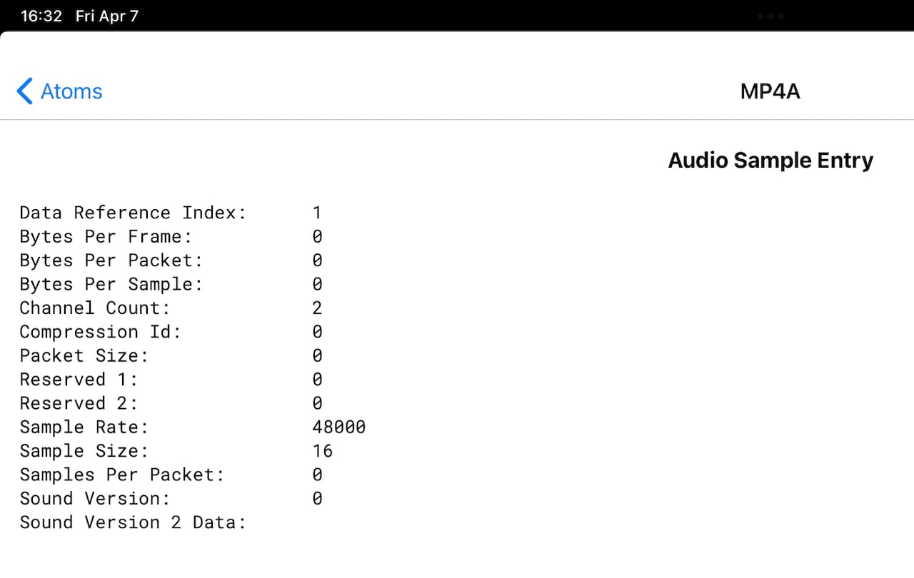 I'm waiting for brew to update approximately a million (103) packages so that I can try ffprobe to (hopefully) verify that those atoms in fact do not exist in that file. It's compiling gcc right now. Ugh.